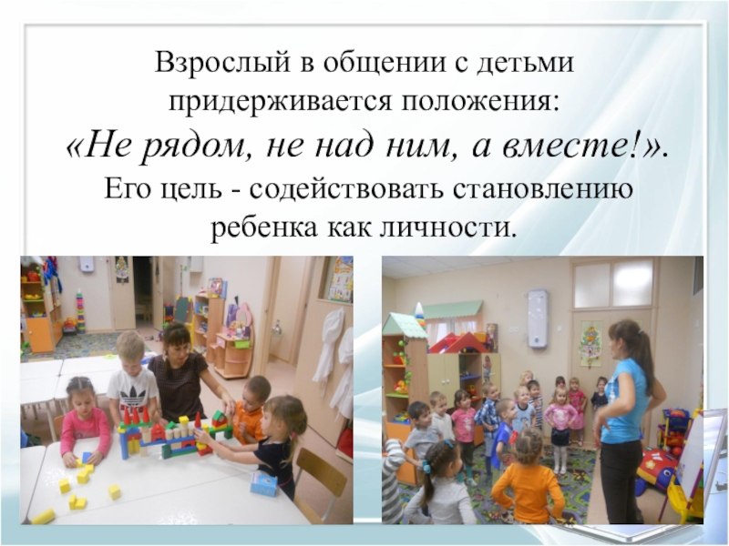 Слайд 5Взрослый в общении с детьми придерживается положения: