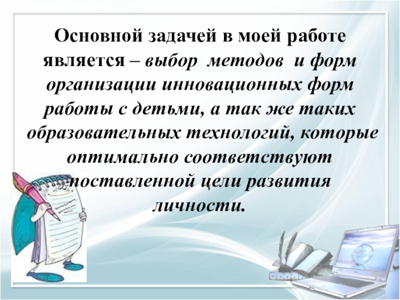 Слайд 3Основной задачей в моей работе является – выбор методов и форм