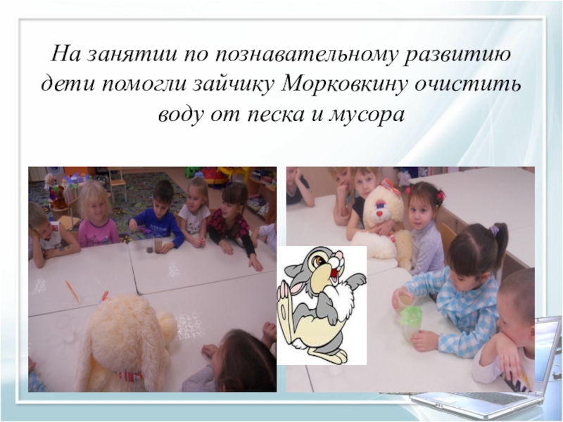 На занятии по познавательному развитию дети помогли зайчику Морковкину очистить воду