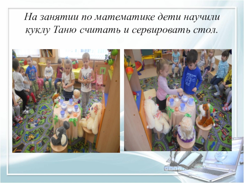 Слайд 16На занятии по математике дети научили куклу Таню считать и сервировать