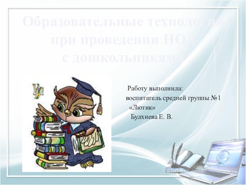 организации инновационных форм работы с детьми, а так же таких образовательных технологий, которые оптимально соответствуют поставленной цели развития личности.