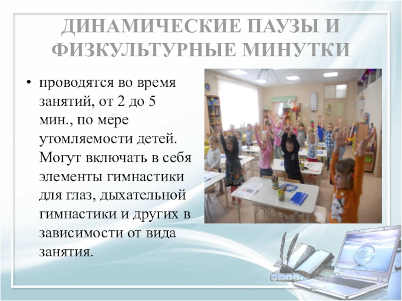 Слайд 8ДИНАМИЧЕСКИЕ ПАУЗЫ И ФИЗКУЛЬТУРНЫЕ МИНУТКИ