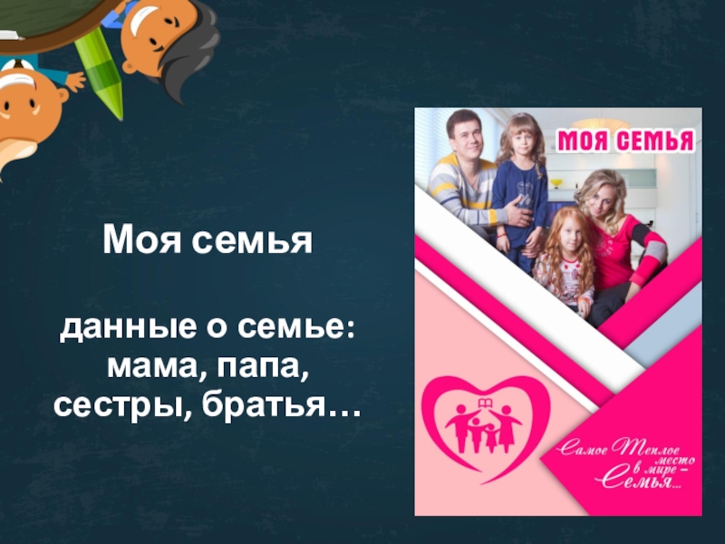 Слайд 4Моя семья данные о семье: мама, папа, сестры, братья…