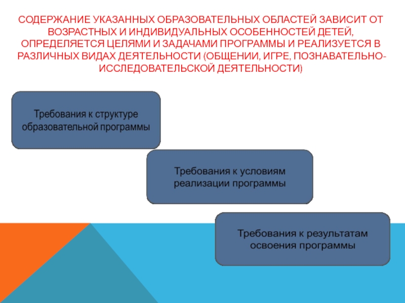 Слайд 19СОДЕРЖАНИЕ УКАЗАННЫХ ОБРАЗОВАТЕЛЬНЫХ ОБЛАСТЕЙ ЗАВИСИТ ОТ ВОЗРАСТНЫХ И ИНДИВИДУАЛЬНЫХ ОСОБЕННОСТЕЙ ДЕТЕЙ,