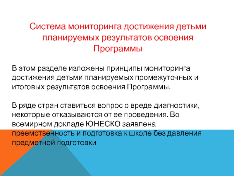 Слайд 21В этом разделе изложены принципы мониторинга достижения детьми планируемых промежуточных и