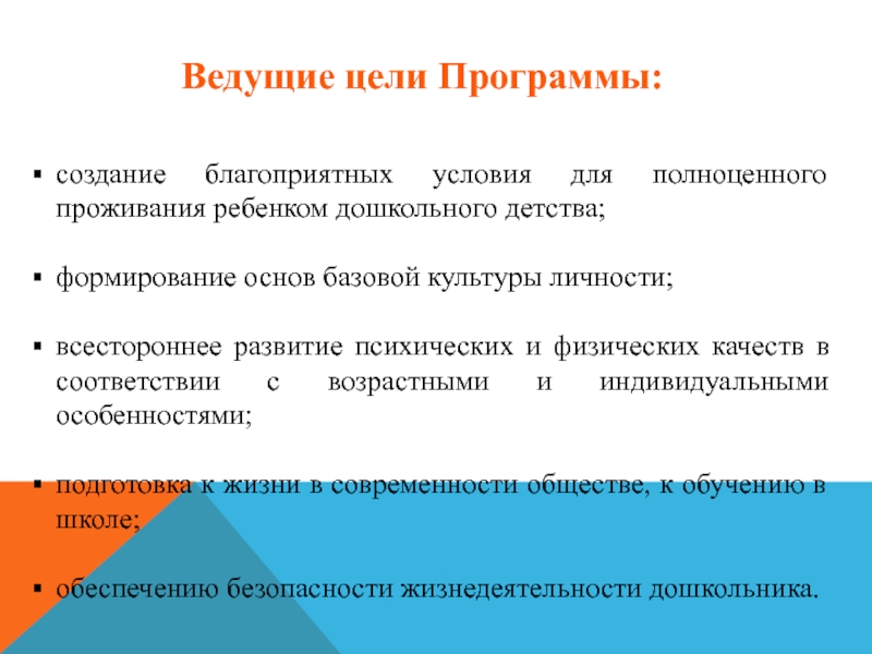 создание благоприятных условия для полноценного проживания ребенком дошкольного детства;