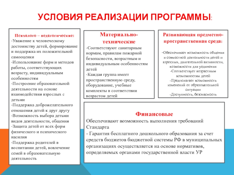 Слайд 22УСЛОВИЯ РЕАЛИЗАЦИИ ПРОГРАММЫ: