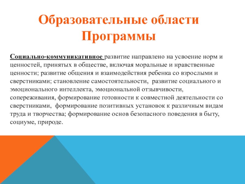 Слайд 17Социально-коммуникативное развитие направлено на усвоение норм и ценностей, принятых в обществе,