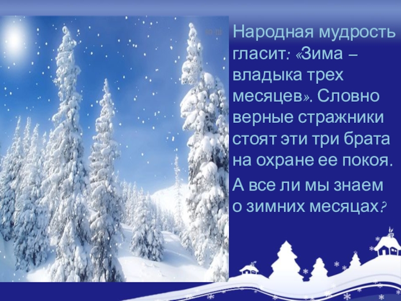 Расположите названия зимних месяцев в порядке их наступления в природе.