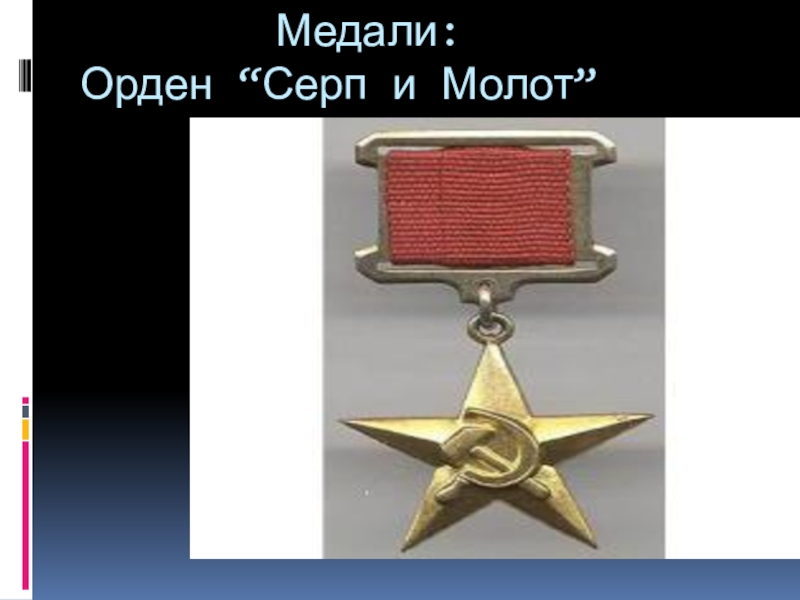 Слайд 5 Медали: Орден “Серп и Молот”
