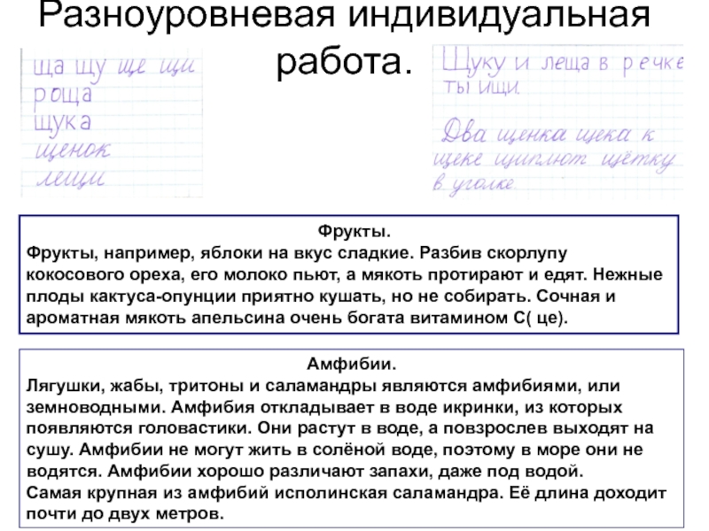 Разноуровневая индивидуальная работа.