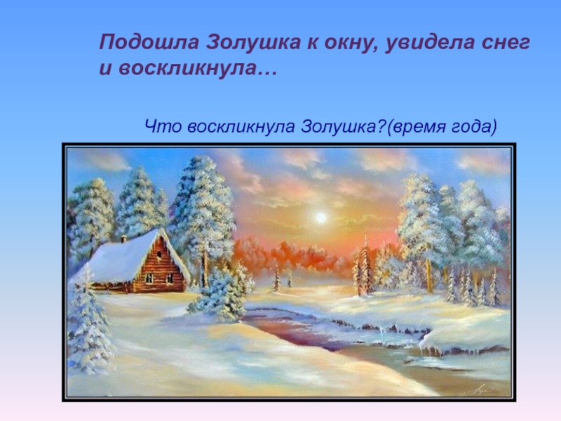 Подошла Золушка к окну, увидела снег и воскликнула…Что воскликнула Золушка?(время года)