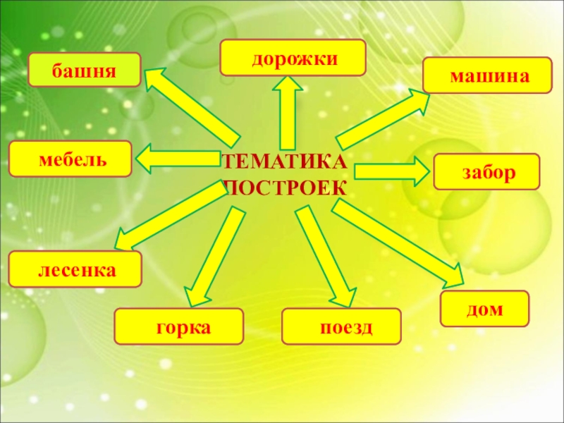 развивать пространственные ориентировки: протяженность предметов (длинная дорожка, высокая башня), их расположение (в середине домик и т.п.);