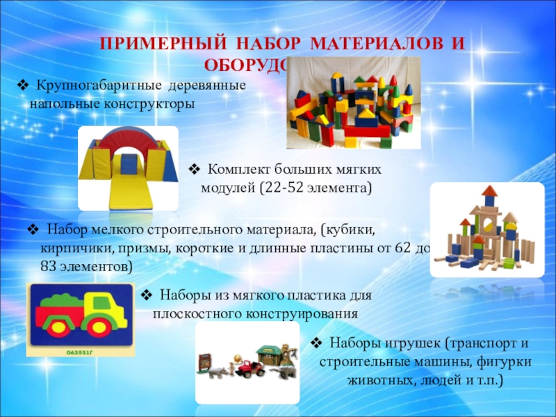 Наборы игрушек (транспорт и строительные машины, фигурки животных, людей и т.п.)