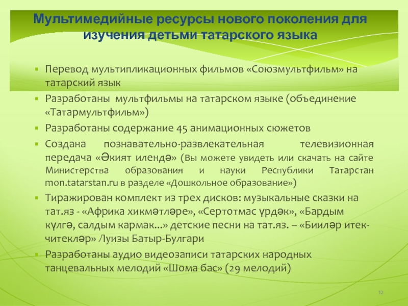 Мультимедийные ресурсы нового поколения для изучения детьми татарского языка