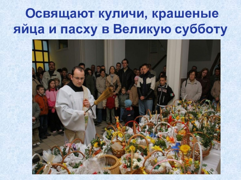 Слайд 24 Освящают куличи, крашеные яйца и пасху в Великую субботу