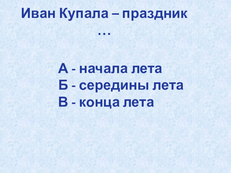 Слайд 38Иван Купала – праздник середины лета