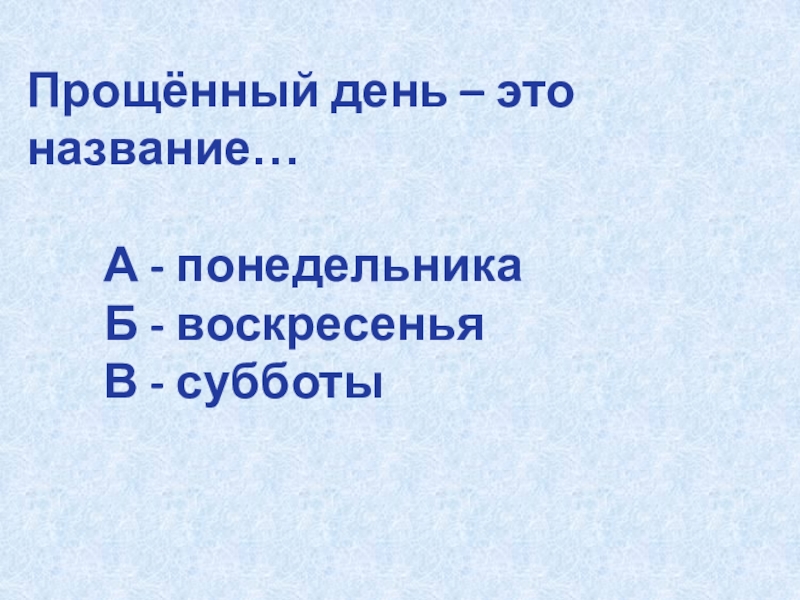 Слайд 27Прощённый день – это название…