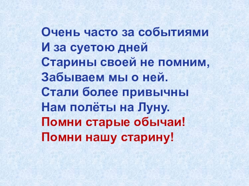 Старины своей не помним,