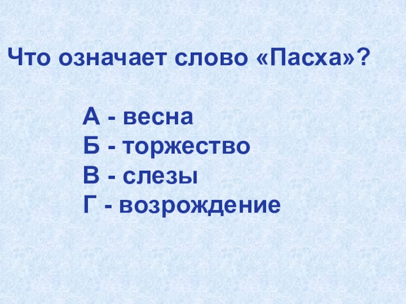 Слайд 39Что означает слово «Пасха»?
