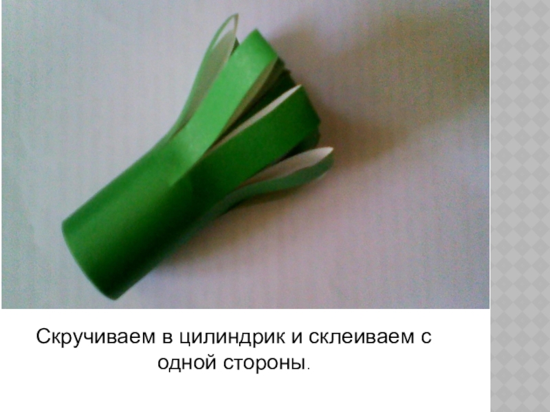 Слайд 5Скручиваем в цилиндрик и склеиваем с одной стороны.