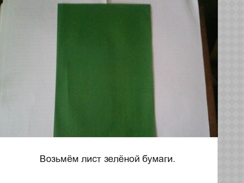 Слайд 3Возьмём лист зелёной бумаги.