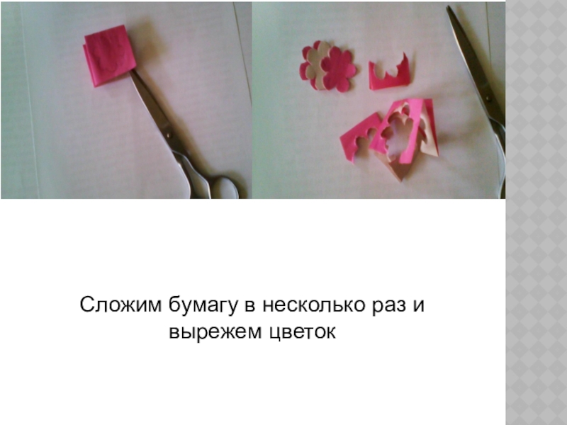 Слайд 8Сложим бумагу в несколько раз и вырежем цветок