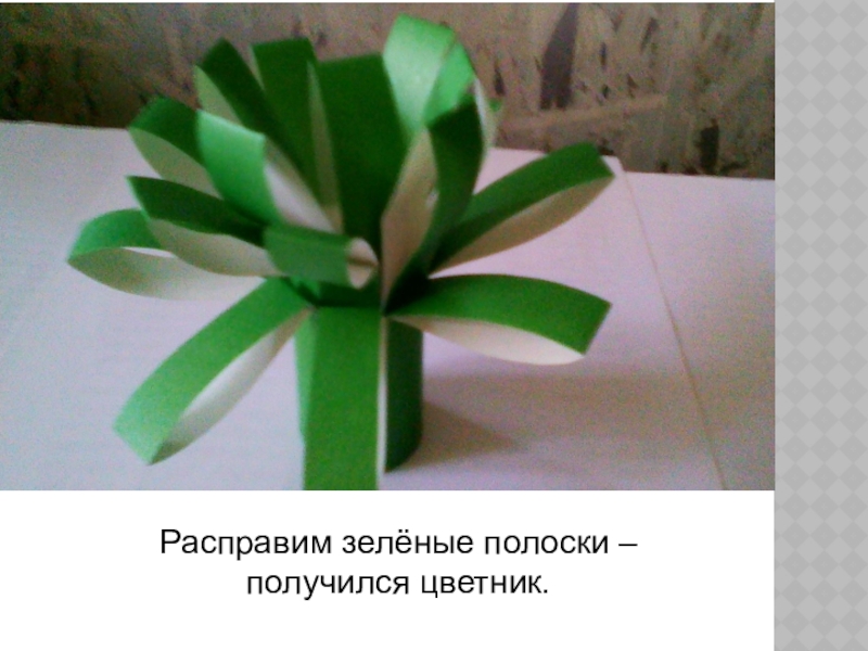 Слайд 6Расправим зелёные полоски – получился цветник.