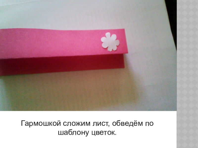 Слайд 7Гармошкой сложим лист, обведём по шаблону цветок.