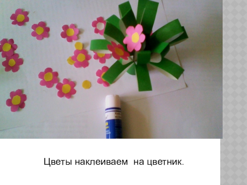 Слайд 12Цветы наклеиваем на цветник.