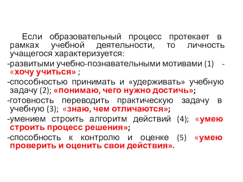 Слайд 22 Если образовательный процесс протекает в рамках учебной деятельности, то личность учащегося