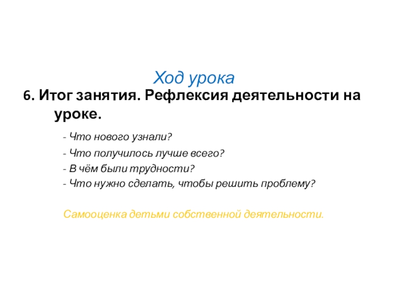 6. Итог занятия. Рефлексия деятельности на уроке.
