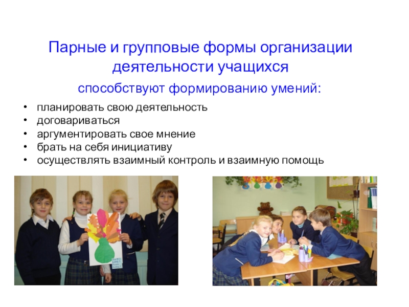 Слайд 17Парные и групповые формы организации деятельности учащихся