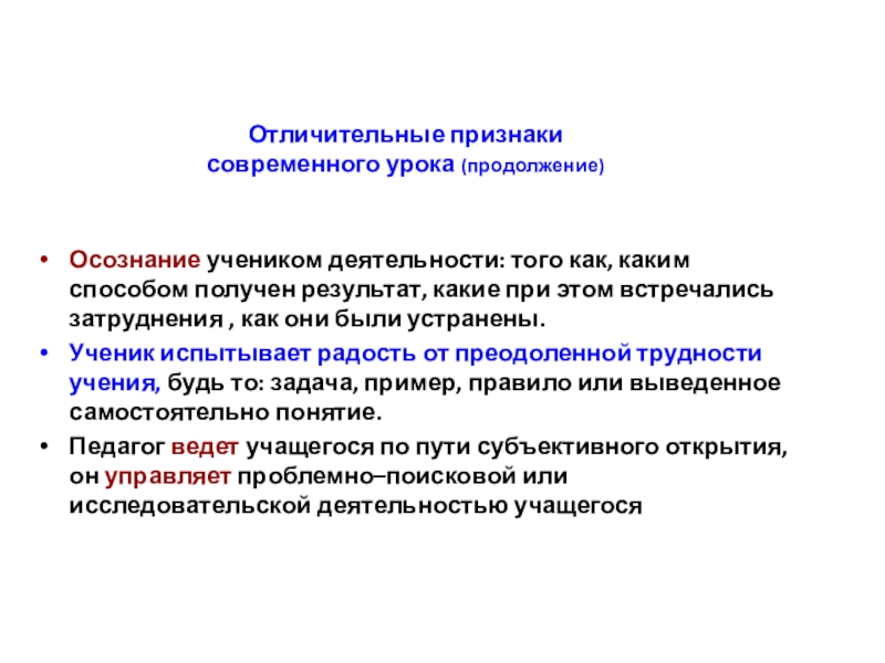 Педагог ведет учащегося по пути субъективного открытия, он управляет проблемно–поисковой или исследовательской деятельностью учащегося
