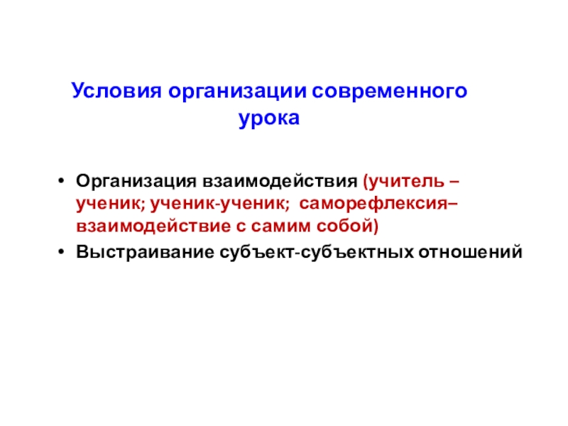 Организация взаимодействия (учитель –ученик; ученик-ученик; саморефлексия–взаимодействие с самим