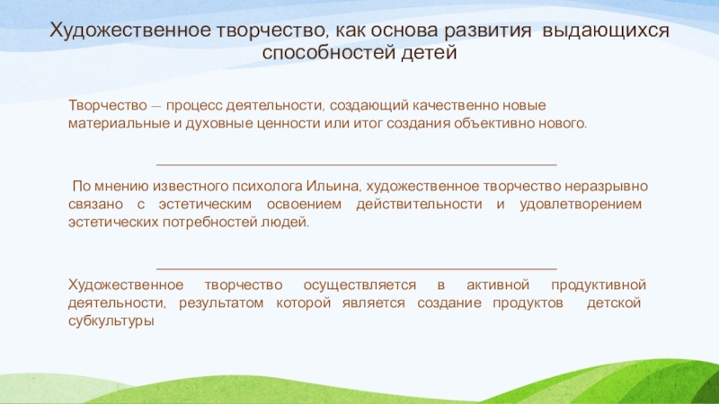 Художественное творчество, как основа развития выдающихся способностей детей