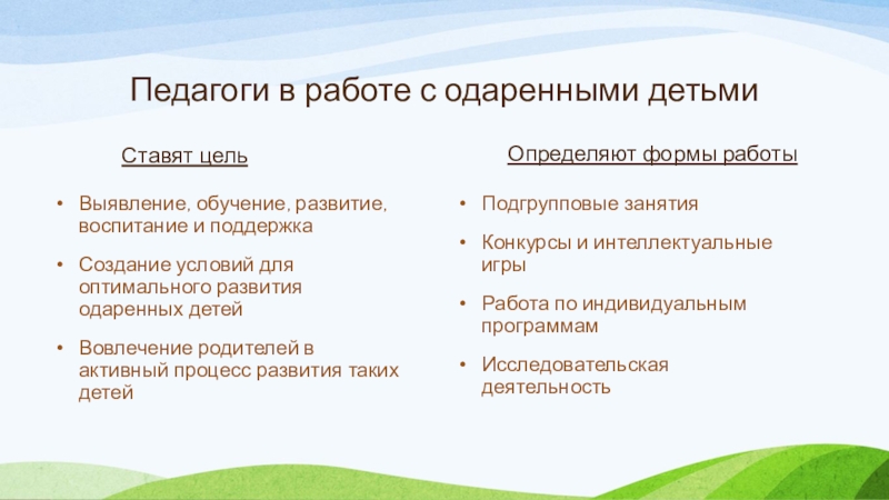 Выделение степени и методов раскрытия одаренных детей