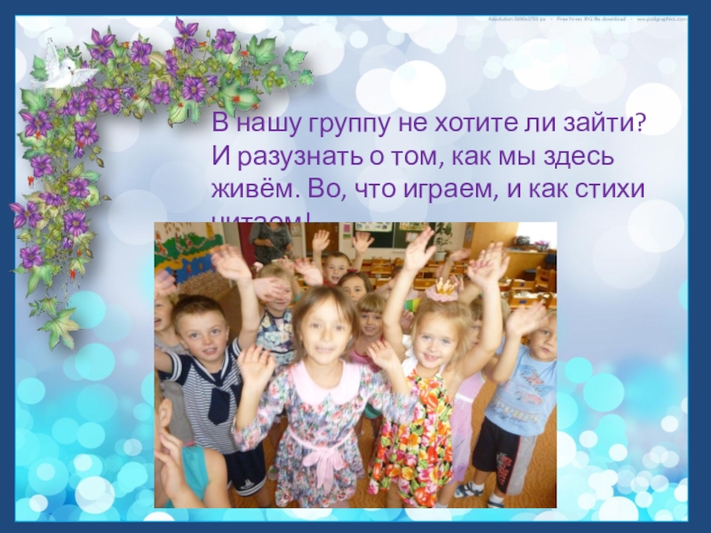 В нашу группу не хотите ли зайти? И разузнать о том, как мы здесь живём. Во, что играем, и как стихи читаем!