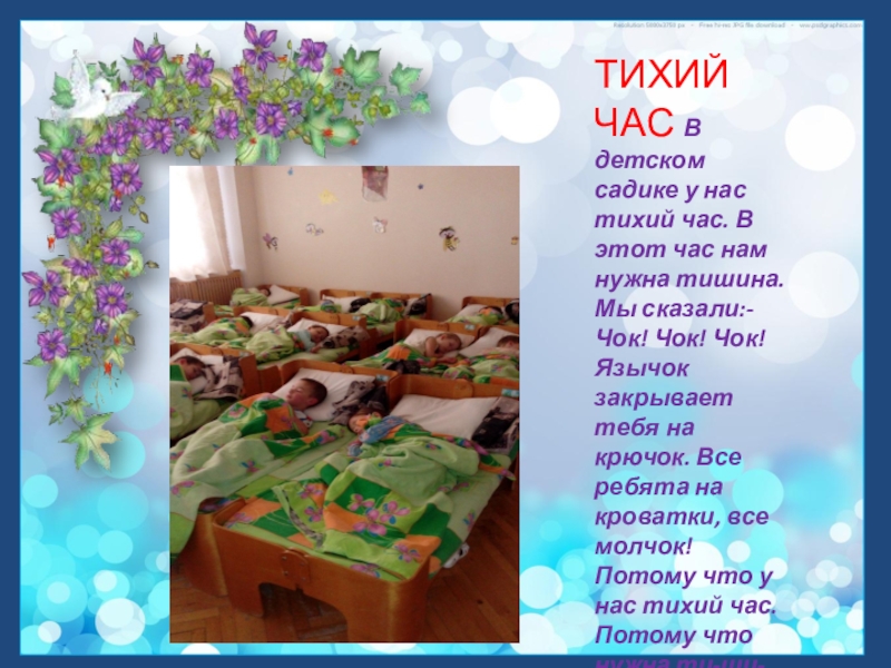 Слайд 10ТИХИЙ ЧАС В детском садике у нас тихий час. В этот