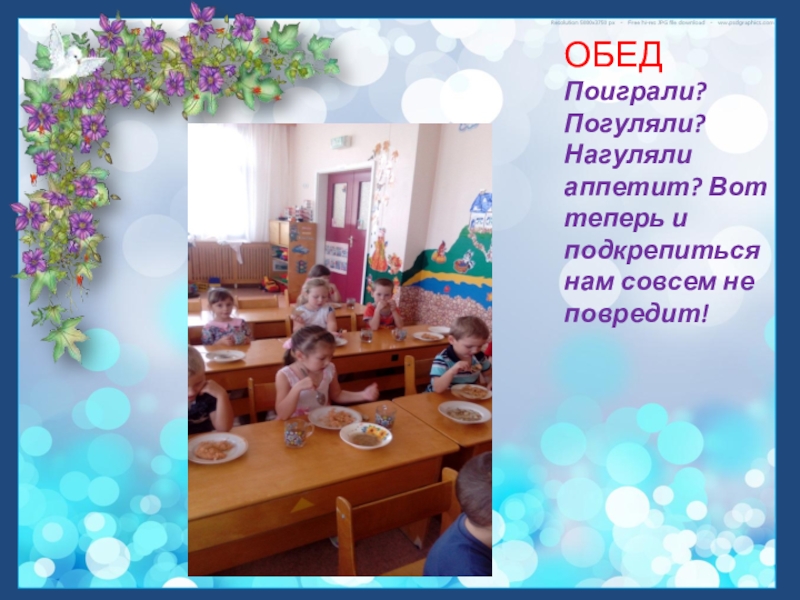 Слайд 9ОБЕД Поиграли? Погуляли?
