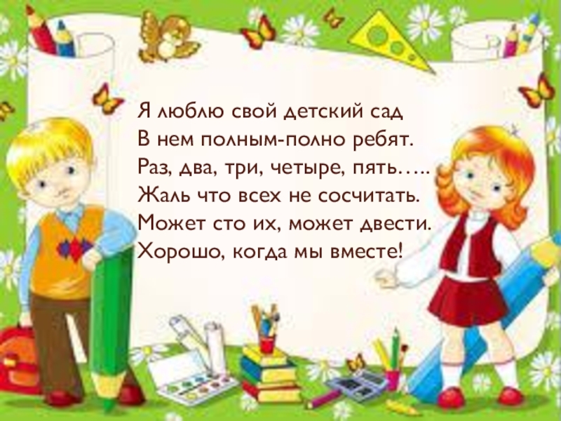 Слайд 12Я люблю свой детский сад В нем полным-полно ребят. Раз, два, три, четыре,