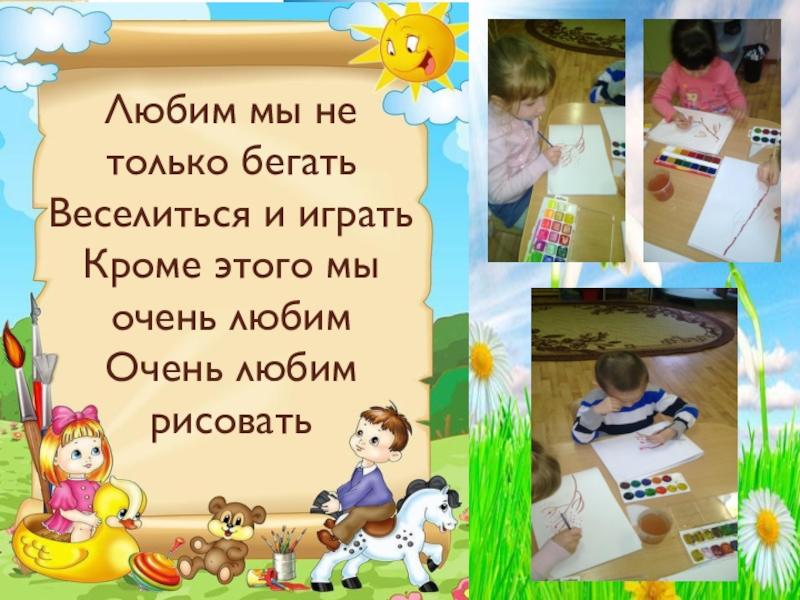 Любим мы не только бегать Веселиться и играть  Кроме этого мы очень любим Очень любим рисовать
