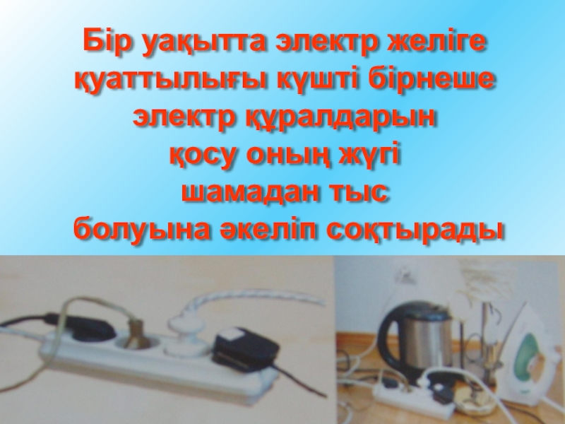 Бір уақытта электр желіге қуаттылығы күшті бірнеше электр құралдарын қосу оның жүгі шамадан тыс болуына әкеліп соқтырады