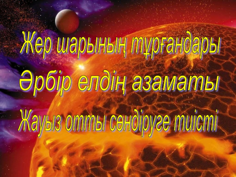 Жер шарының тұрғандарыӘрбір елдің азаматыЖауыз отты сөндіруге тиісті
