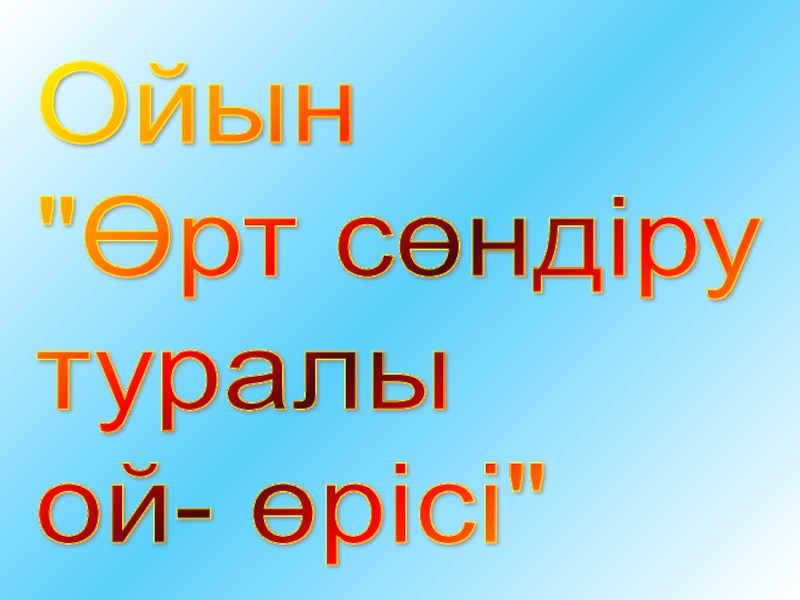 Слайд 16Ойын "Өрт сөндіру туралы ой- өрісі"
