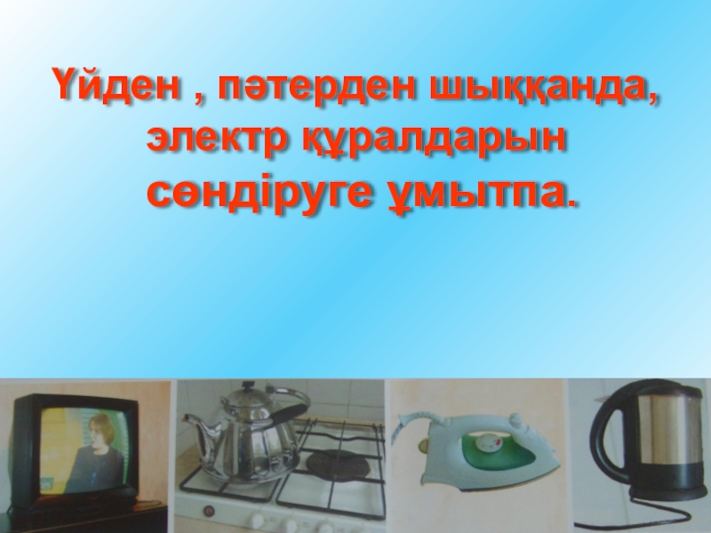 Үйден , пәтерден шыққанда, электр құралдарын сөндіруге ұмытпа.