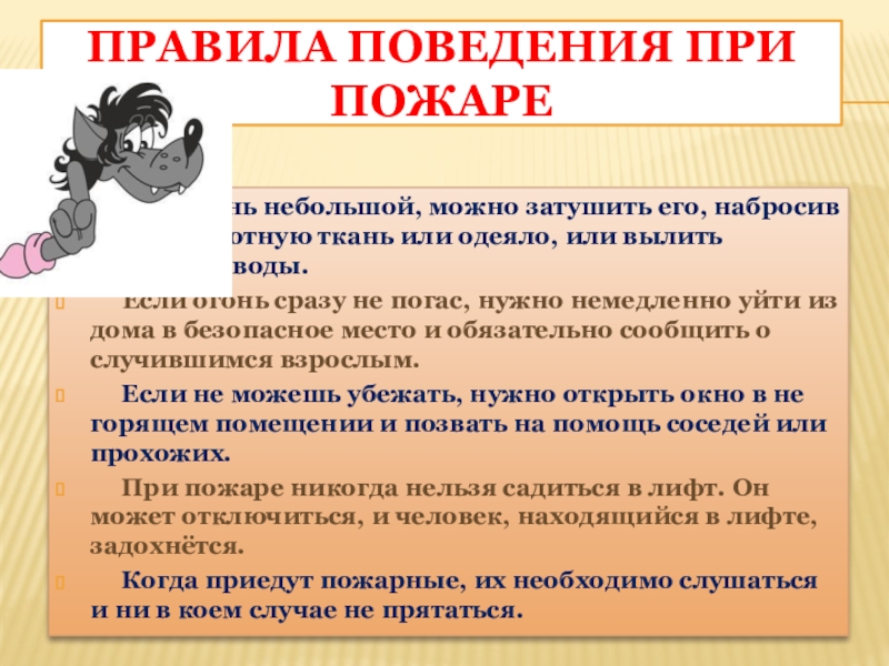 Слайд 12Правила поведения при пожаре