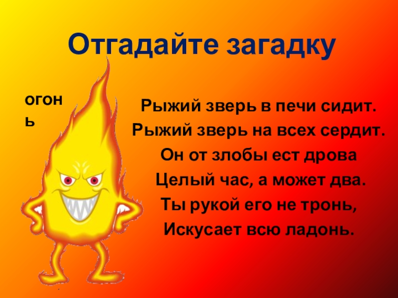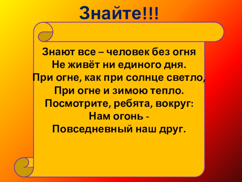 полезном и вредном действии, влиянии на жизнь человека, о правилах безопасности при обращении с огнём.