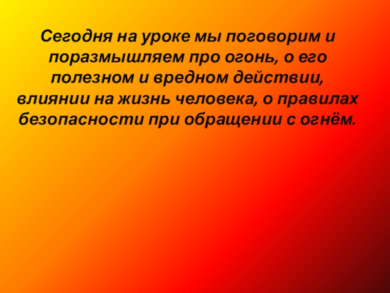 Слайд 4Сегодня на уроке мы поговорим и поразмышляем про огонь, о его