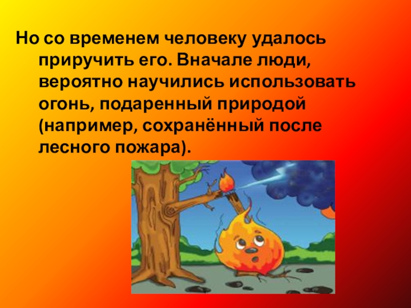 Слайд 7Но со временем человеку удалось приручить его. Вначале люди, вероятно научились